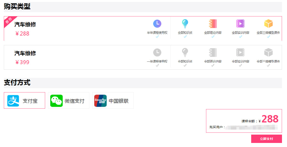 我們100VR教育培訓網為您提供的支付方式有支付寶和微信支付。